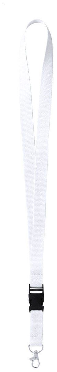 Polyesterový lanyard s oddělitelnou kovovou karabinkou.