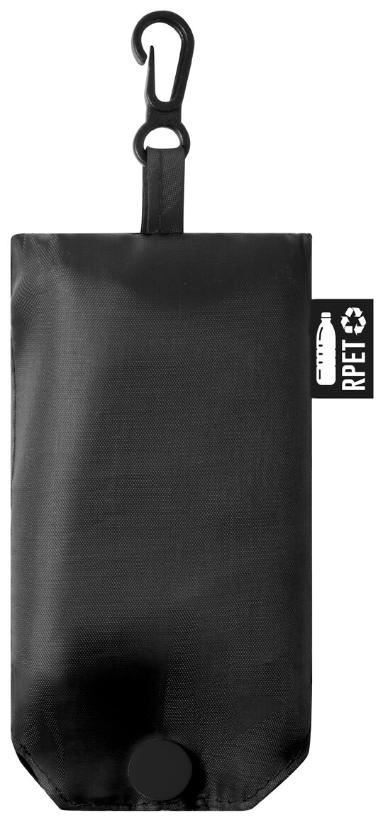 Skládací nákupní taška z RPET polyesteru, s etiketou s označením RPET.