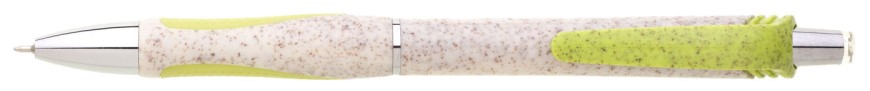 Propiska s plastem s podílem pšeničné slámy v přírodní barvy se světle zeleným klipem a barevným gumovým úchopem. Náplň X20, hrot 0,5mm.