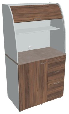 Dvě police ve vrchní části kuchyňky poskytují dostatečnou kapacitu pro vaše skleničky, hrnky či talíře. Na pracovní desku můžete umístit např. kávovar a kabelovou průchodkou v zadní části vyvedete přívodní kabel z prostoru kuchyňky.