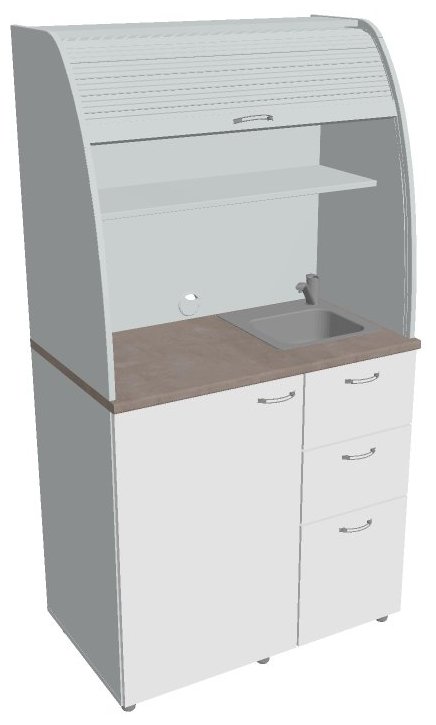 V provedení se dřezem je hloubka dvou vrchních zásuvek zkrácena právě z důvodu umístění dřezu.
