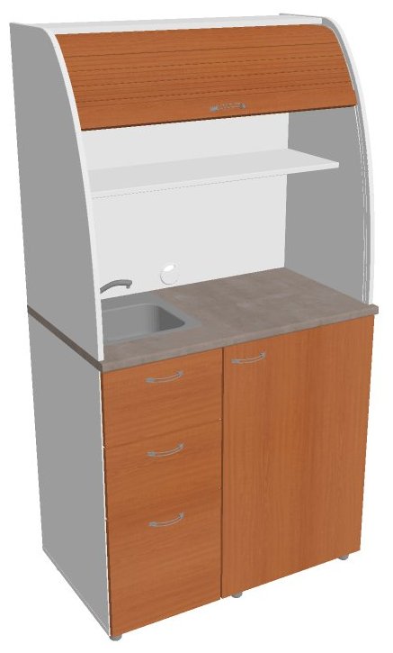 V provedení se dřezem je hloubka dvou vrchních zásuvek zkrácena právě z důvodu umístění dřezu.