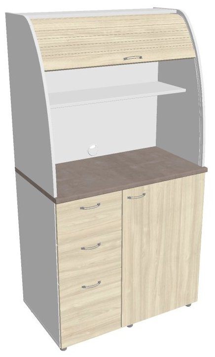 Dvě police ve vrchní části kuchyňky poskytují dostatečnou kapacitu pro vaše skleničky, hrnky či talíře. Na pracovní desku můžete umístit např. kávovar a kabelovou průchodkou v zadní části vyvedete přívodní kabel z prostoru kuchyňky.