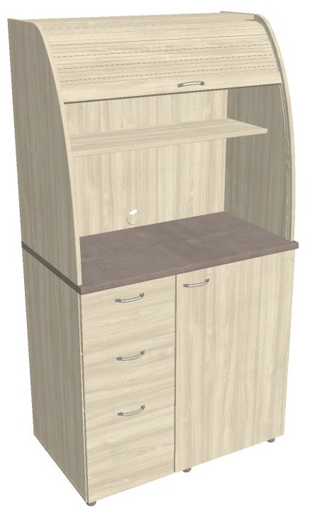 Dvě police ve vrchní části kuchyňky poskytují dostatečnou kapacitu pro vaše skleničky, hrnky či talíře. Na pracovní desku můžete umístit např. kávovar a kabelovou průchodkou v zadní části vyvedete přívodní kabel z prostoru kuchyňky.