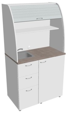 V provedení se dřezem je hloubka dvou vrchních zásuvek zkrácena právě z důvodu umístění dřezu