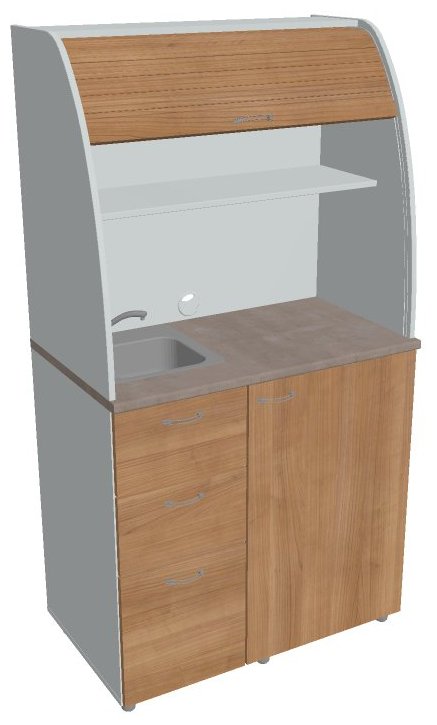 V provedení se dřezem je hloubka dvou vrchních zásuvek zkrácena právě z důvodu umístění dřezu