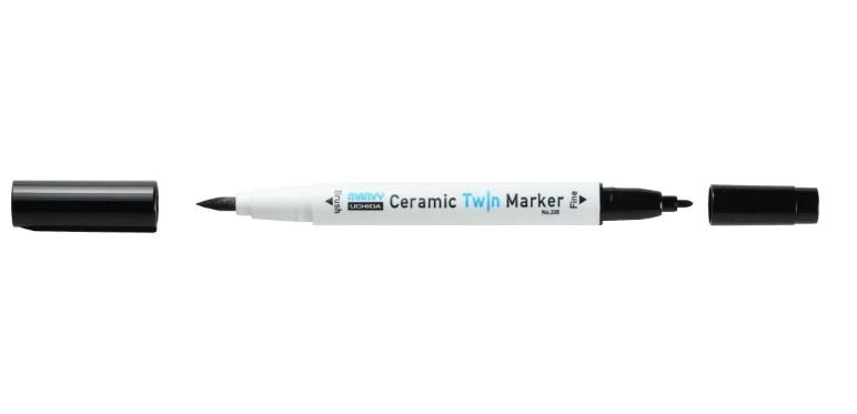 Popisovač černé barvy na keramiku, sklo a porcelán. Dva různé hroty pro aplikaci zapékacího inkoustu.