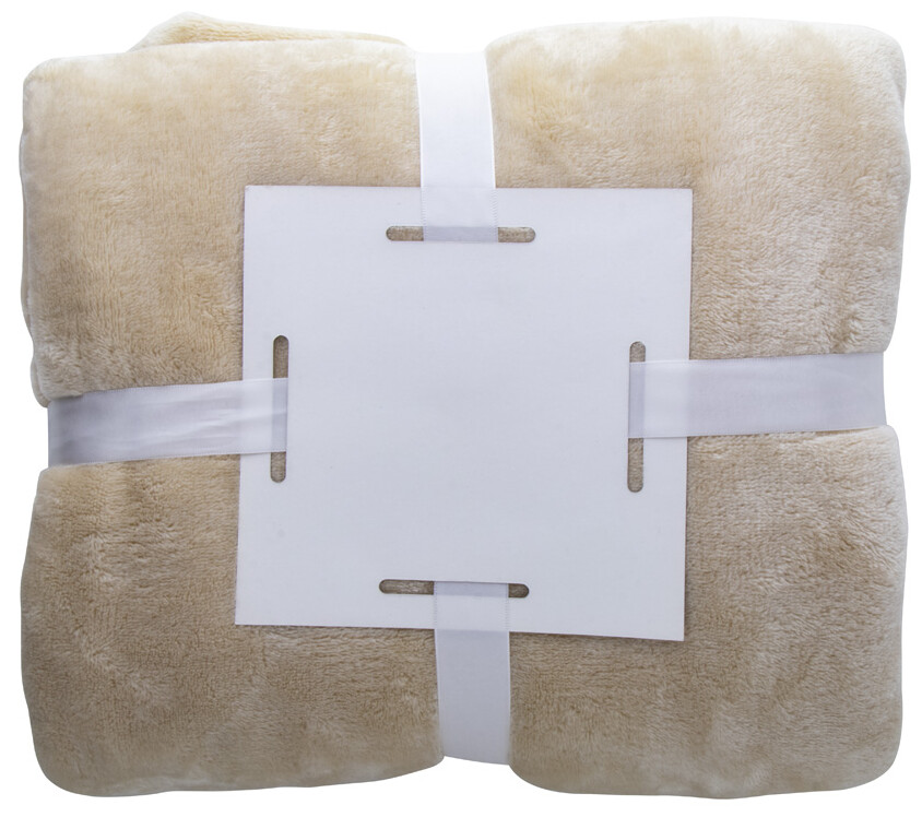 Flanelová fleecová deka, 280 gr/m2. Zabaleno bílou stuhou s potisknutelnou papírovou kartou.