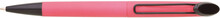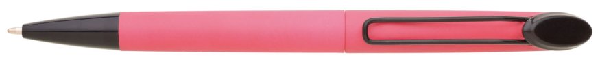 Plastová otočná propiska ARESTA v neonově růžové barvě s černou špičkou a černým kovovým klipem. Na držák klipu je možné umístit epoxy samolepku. Náplň velkoobsahová, modře píšící.