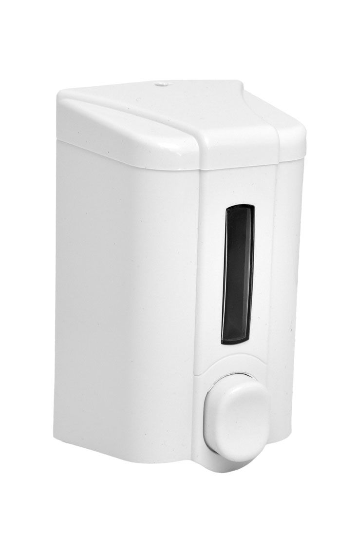 Zásobník na tekuté mýdlo Vialli, dolévací, bílý, 500 ml je kompaktní nástěnný dávkovač s průhledným zásobníkem, který umožňuje snadnou kontrolu hladiny mýdla. Je ideální pro málo frekventovaná místa, kde není potřeba časté doplňování.