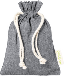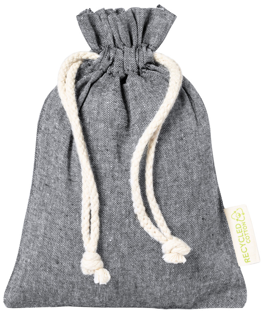 Opakovaně použitelný pytlík na potraviny z recyklované bavlny se stahování na šňůrku. 100% recyklovaná bavlna, 120 g/m2.