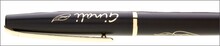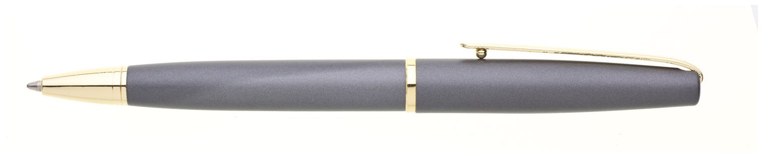 Elegantní šedá mosazná propiska s doplňky ve zlaté barvě. Laser zlato-šedý