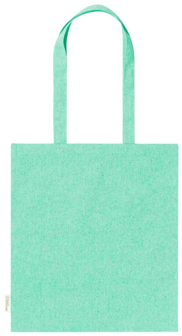 Opakovaně použitelná nákupní taška ze 100% recyklované bavlny s dlouhými uchy a výrazným štítkem z recyklované bavlny, 140 g/m2.