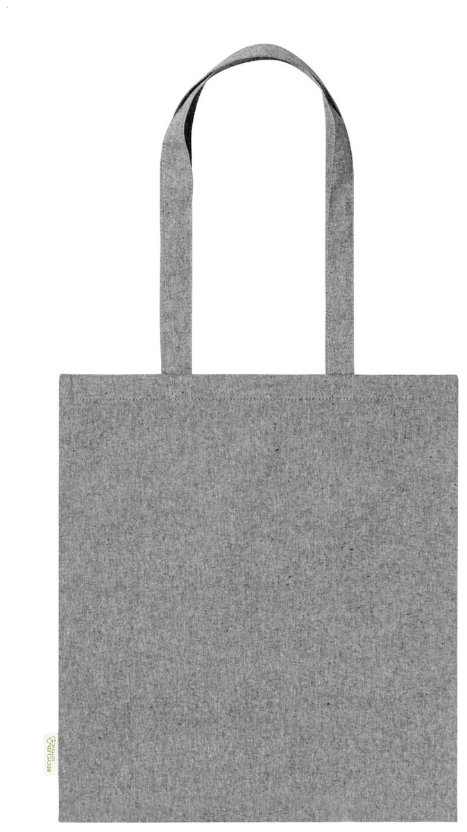 Opakovaně použitelná nákupní taška ze 100% recyklované bavlny s dlouhými uchy a výrazným štítkem z recyklované bavlny, 140 g/m2.