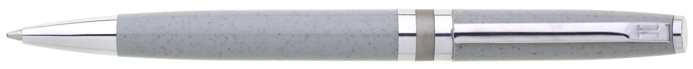 Varianta klasické propisky, šedé tělo z materiálu s podílem slámy, tělo je zdobené dvěma chromovými kroužky. Otočný mechanismus, náplň modře píšící.