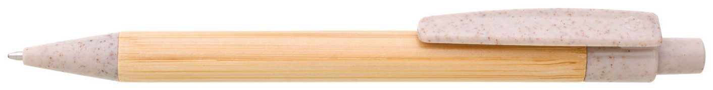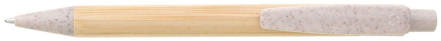 Bambusové tělo propisky s doplňky z plastu s podílem slámy. Náplň modře píšící velkoobsahová.