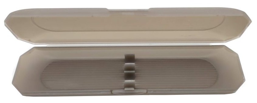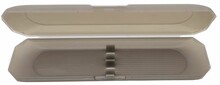 Plastové pouzdro v šedé barvě na 2 tenká pera. Baleno v bílém papírovém přebalu.
