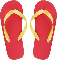 Plážové žabky na zakázku s PE podrážkou a PCV pásky. Barevnost podrážky a pásků lze na vyžádání kombinovat. Min. mn.: 50 párů/kombinace.