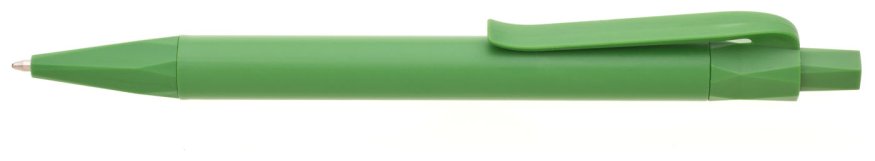 Plastová zelená propiska MARCI z kukuřičného PLA plastu (přírodní náhražka plastu vyrobená ze škrobu fermentované rostliny). Velkoobsahová náplň, modře píšící.