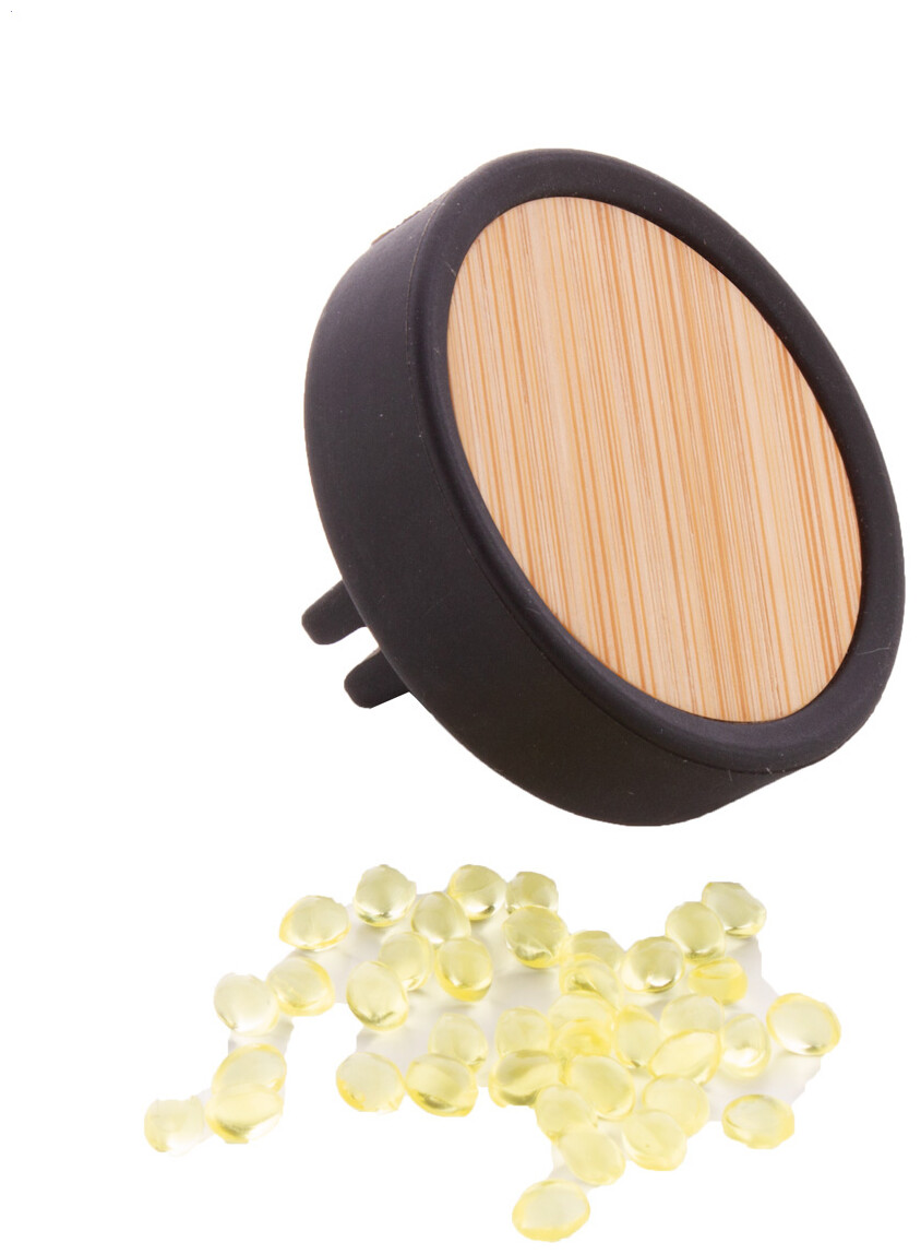 Silikonový osvěžovač vzduchu do auta s bambusovou přední částí a upevněním do větracího otvoru, citronová vůně.