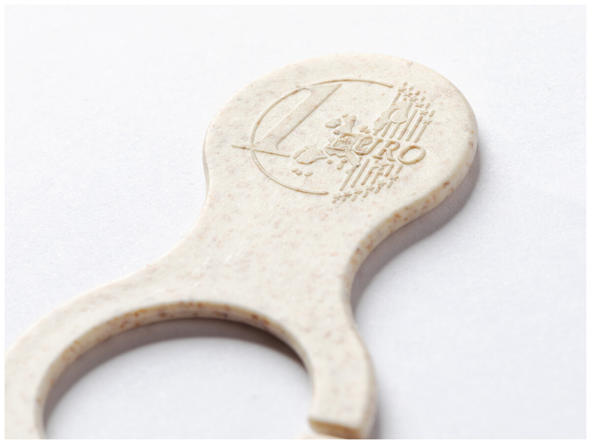 Plastový žeton do nákupního vozíku z ekologické pšeničné slámy a ABS s nápisem euro na jedné straně. Možnost tisku pouze z jedné strany.