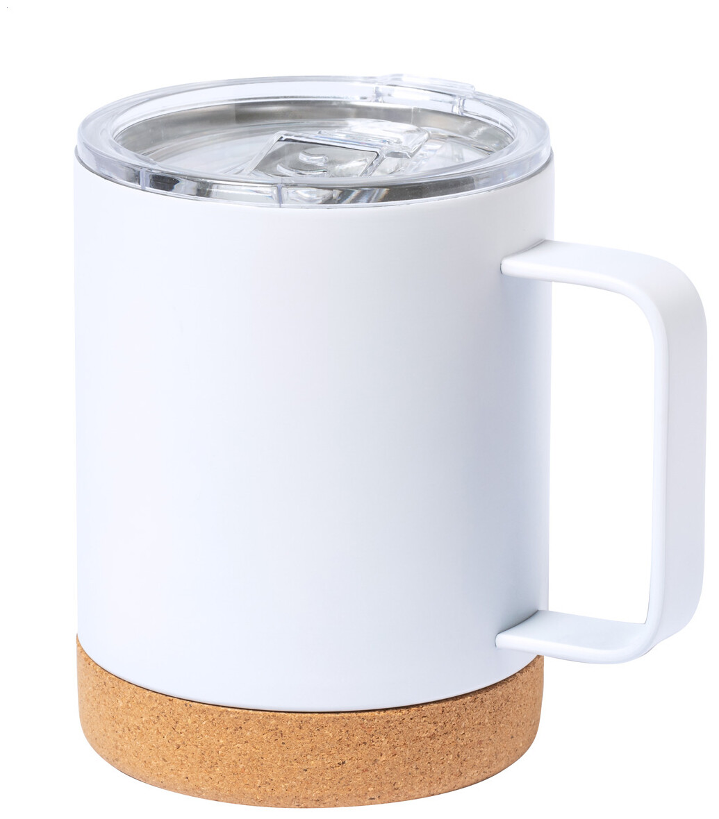 Dvoustěnný nerezový termohrnek s víčkem na pití a dnem z přírodního korku, 330 ml. V kraftové papírové krabici.
