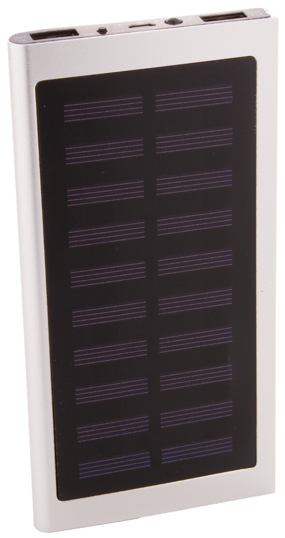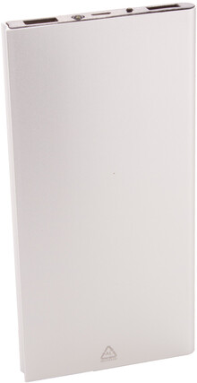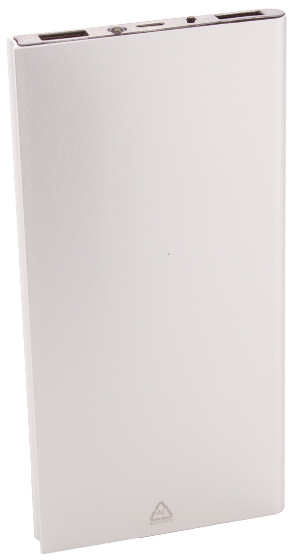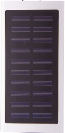 USB power banka v pouzdře z recyklovaného hliníku se zabudovanou solární nabíječkou a 4000 mAh baterií. Se 2 porty USB a 1 portem USB-C pro nabíječku. Vstupní port USB-C. Včetně USB nabíjecího kabelu.