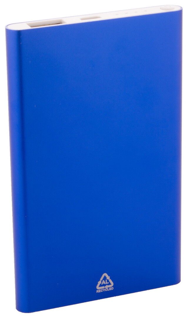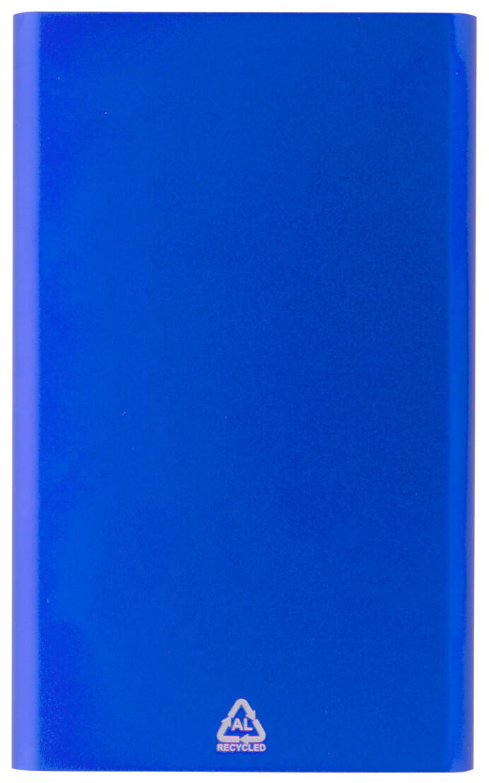 USB power banka v pouzdře z recyklovaného hliníku s 4000 mAh baterií. S 1 portem USB a 1 portem USB-C pro nabíječku. Vstupní port USB-C. Včetně USB nabíjecího kabelu.