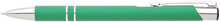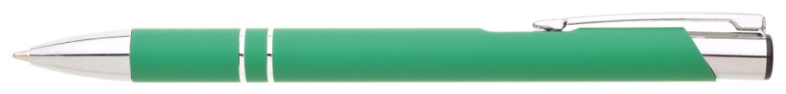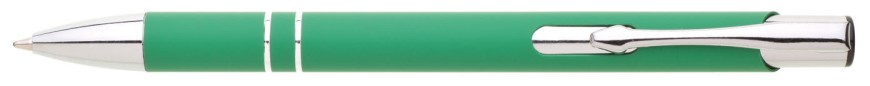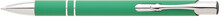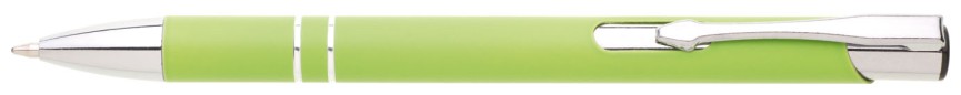 Hliníková propiska se stříbrnými doplňky a měkkým pogumovaným soft povrchem ve světle zelené barvě. Modře píšící.