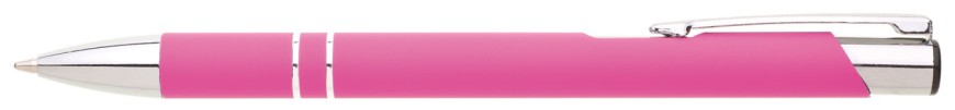 Hliníková propiska se stříbrnými doplňky a měkkým pogumovaným povrchem soft v růžové barvě. Modře píšící.