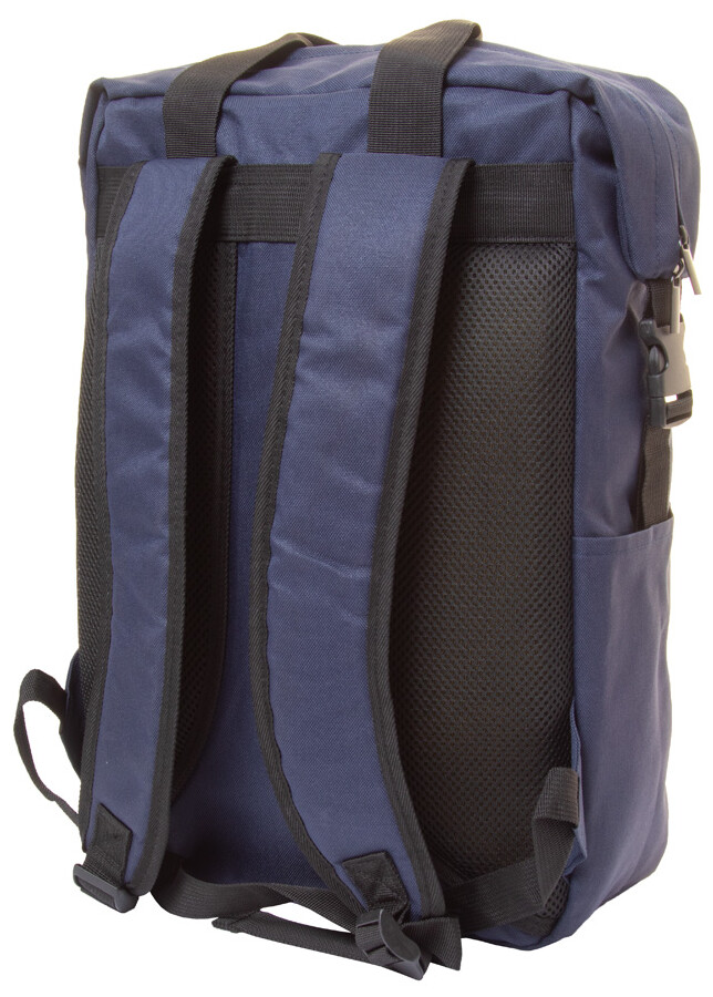 Batoh RPET s hlavní přihrádkou na zip a přední kapsou, polstrovanou přihrádkou na notebook (15") a tablet (10"), bočními popruhy a kapsami na přezky, polstrovaná záda a ramenní popruhy. 600D RPET polyester s výrazným štítkem RPET.