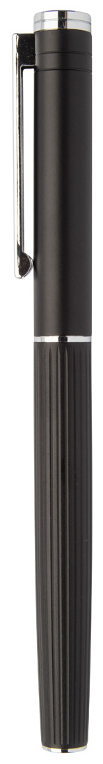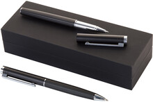 Elegantní sada hliníkového kuličkového pera a rolleru s proužkovaným tubusem. V černé dárkové krabičce, s modrou náplní.