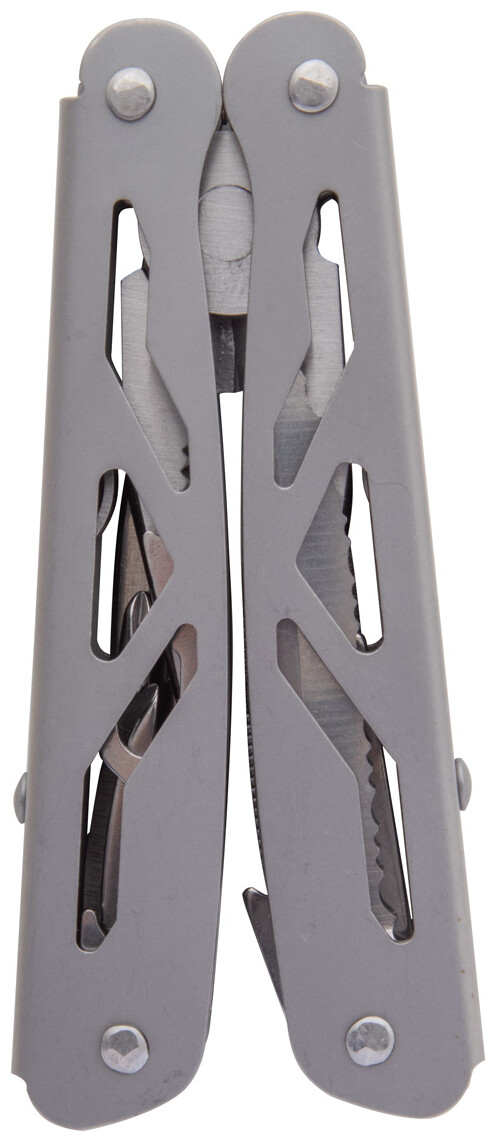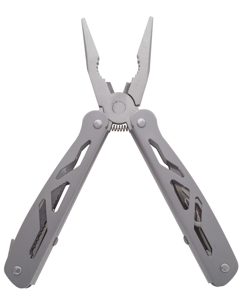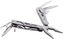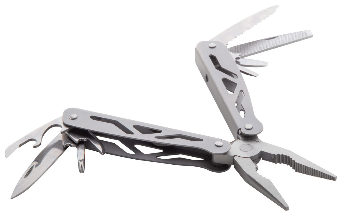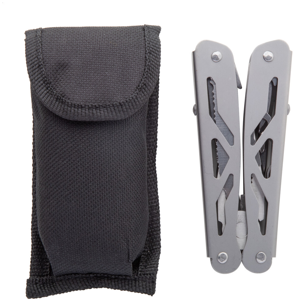 Multifunkční nástroj z nerezové oceli s 9 funkcemi, v polyesterovém pouzdře.