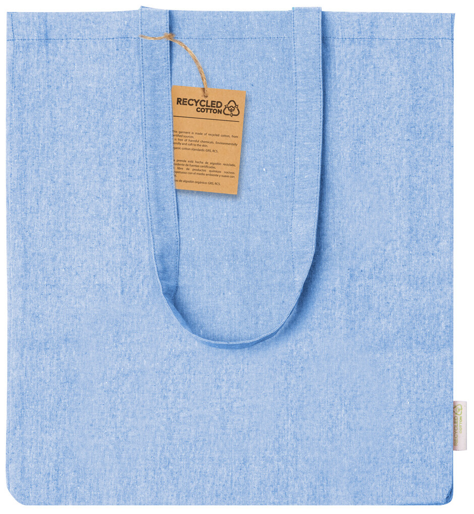 Nákupní taška z recyklované bavlny s klínem, dlouhými uchy a výrazným štítkem z recyklované bavlny. 100% recyklovaná bavlna, 140 g/m2.