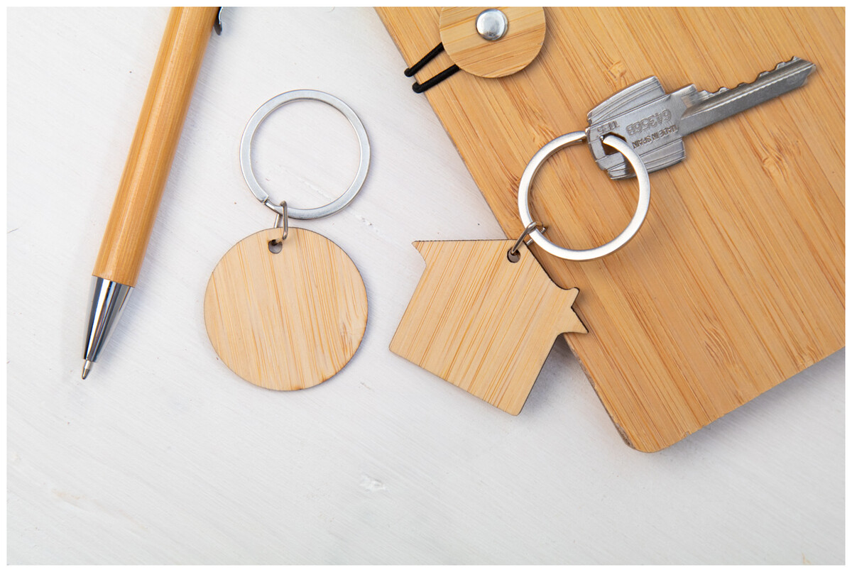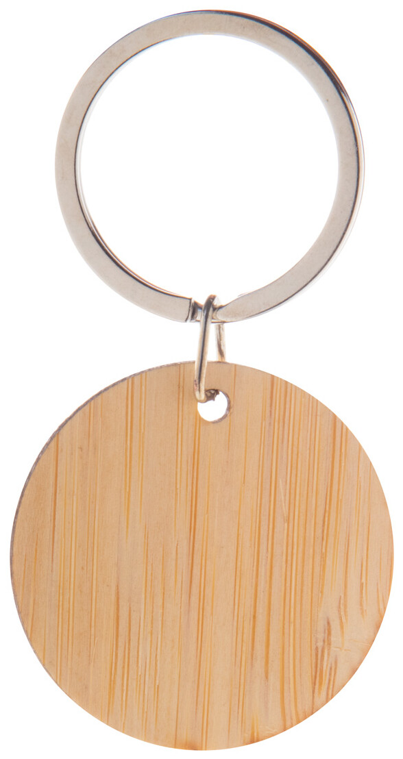 Bambusový přívěsek na klíče s kovovým kroužkem.