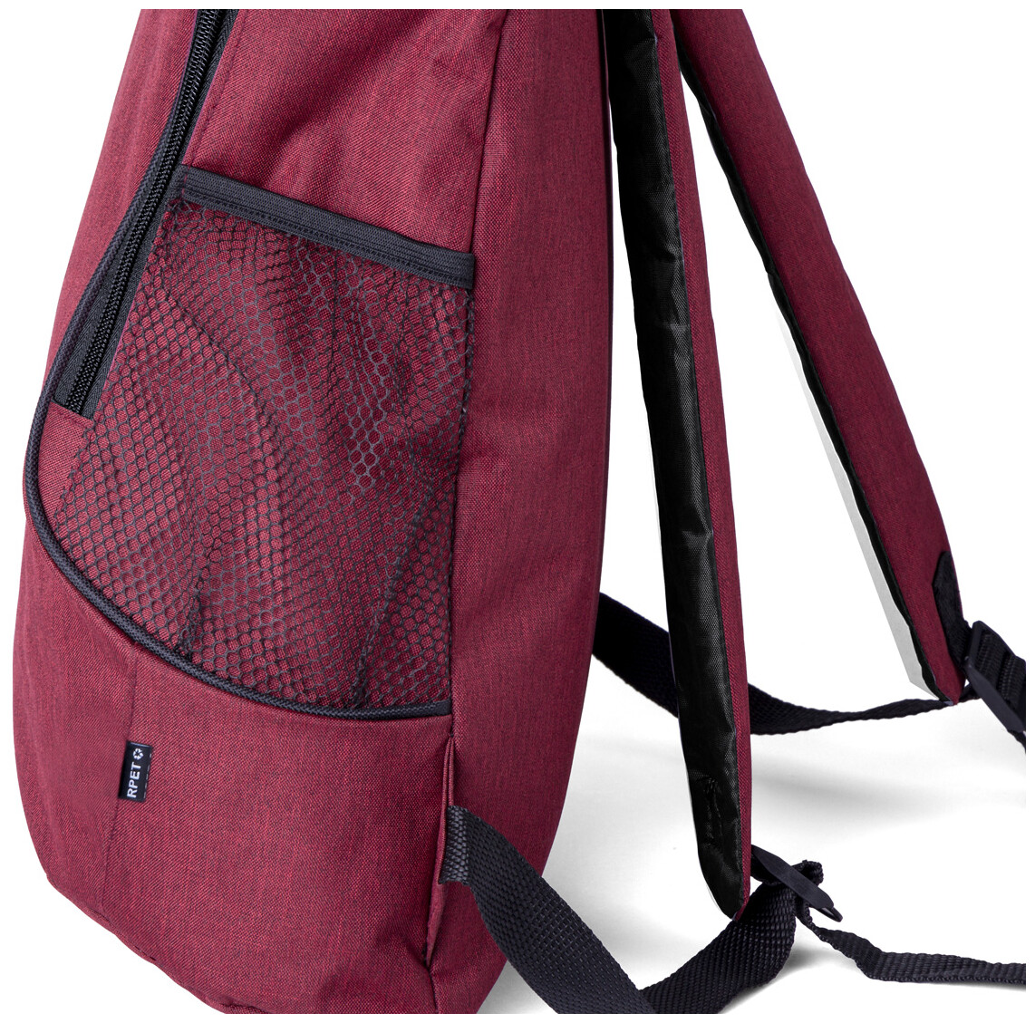 Batoh RPET s přihrádkou na zip a přední kapsou, boční síťované kapsy, polstrovaná záda a ramenní popruhy. 300D RPET polyester s výrazným štítkem RPET.