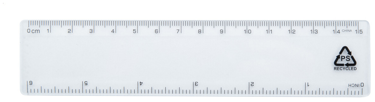 Pravítko z recyklovaného plastu PS, 15 cm.