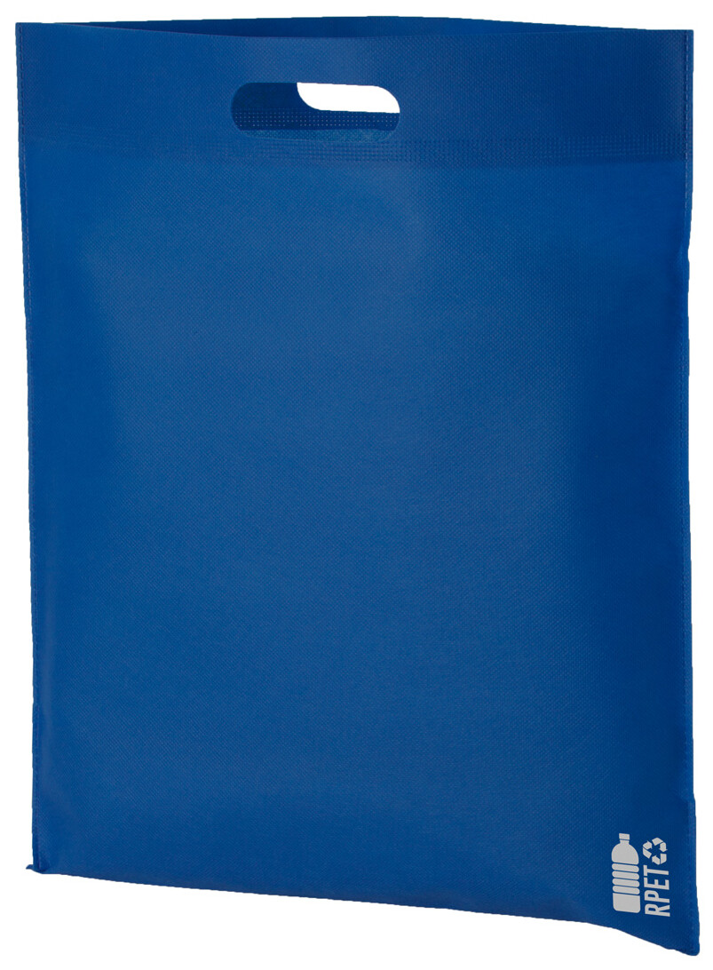 Nákupní taška z netkané textilie RPET s vysekávanými uchy, 70 g/m2. S výrazným znakem RPET.