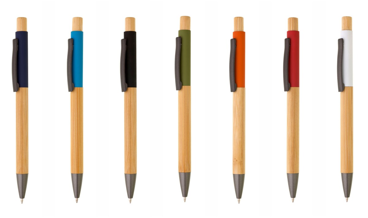 Bambusová propiska s tyrkysovou hliníkovou částí pod klipem, ideálním pro značení laserem. Náplň X20 modře píšící. Kolekce SAVE THE NATURE.