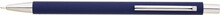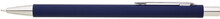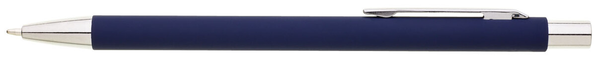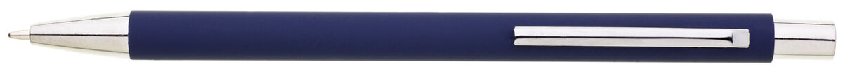 Tenká, jednoduchá propiska s tmavě modrým pogumovaným tělem a chromovými doplňky. Náplň X20, modře píšící.