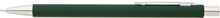 Tenká, jednoduchá propiska se zeleným pogumovaným tělem a chromovými doplňky. Náplň X20, modře píšící.