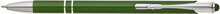 Tenká zelená hliníková propiska s chromovými doplňky a touchem v barvě těla. Náplň X20 modře píšící.