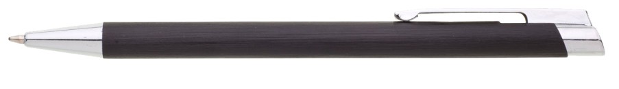 Černá kovová propiska s jemně rýhovaným povrchem.