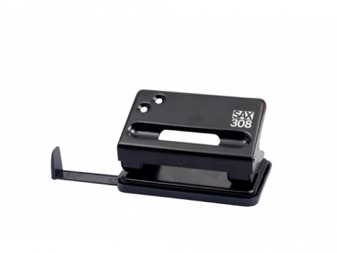 Malý stolní celokovový děrovač. Děrovač s kapacitou až 15 listů, průměr otvoru 5,5 mm, rozteč otvorů 80 mm. Plastový příložník. Barevné provedení: černé.