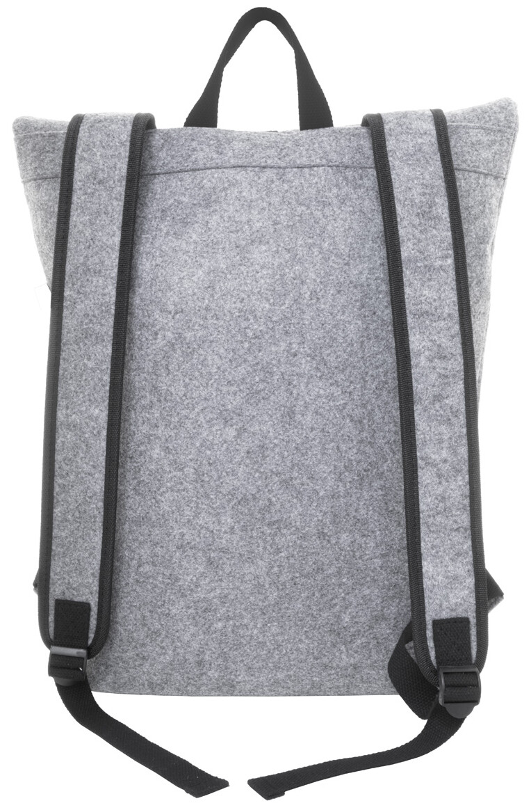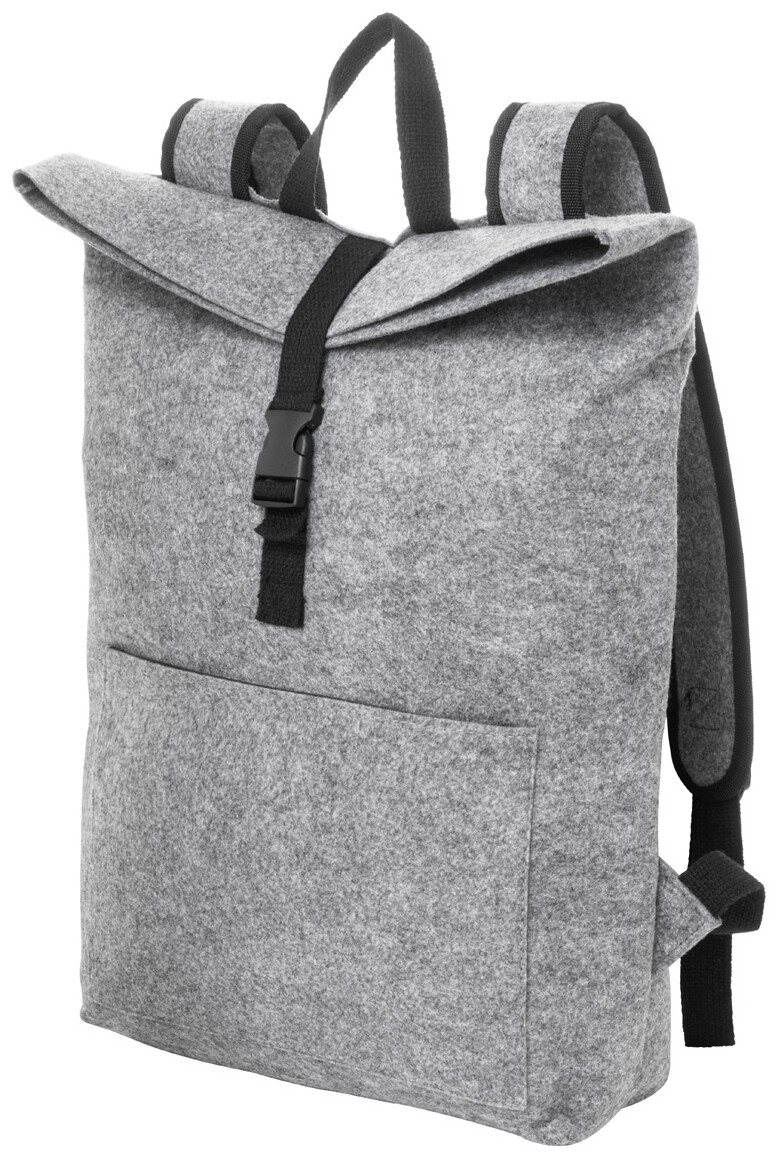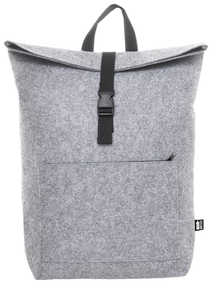 Batoh na rolování z plsti RPET s hlavní přihrádkou na přezku a přední kapsou na zip, přihrádkou na notebook (15") a polstrovanými ramenními popruhy. S výrazným štítkem RPET.
