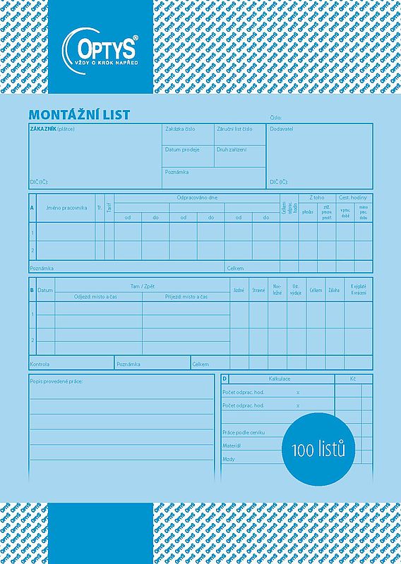 | OPT-277 | MONTÁŽNÍ LIST | 40,00 Kč | 48,40 Kč | 1 ks | |||