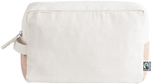 Kosmetická taštička na zip z Fairtrade bavlny a laminované juty, s výrazným Fairtrade štítkem. 100% Fairtrade bavlna, 180 g/m2.