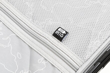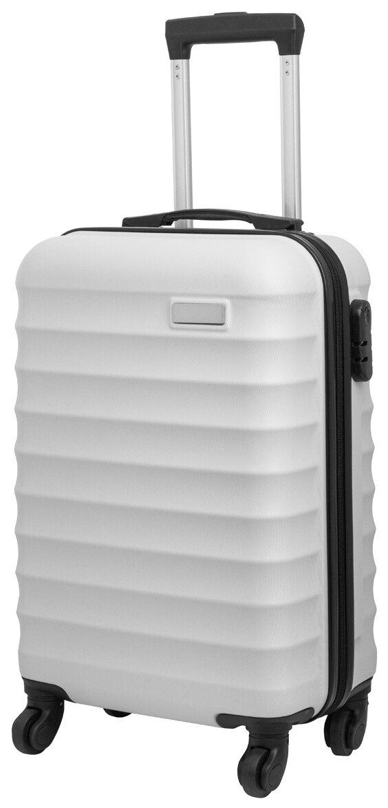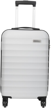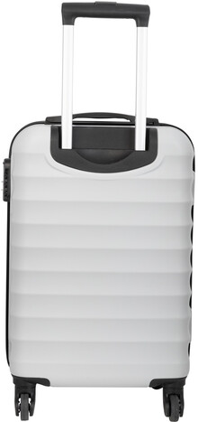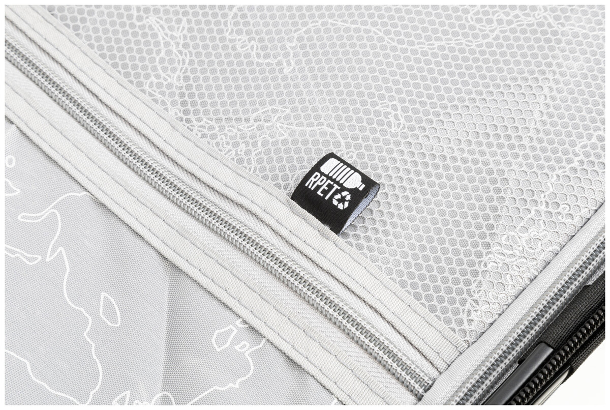 20palcová příruční taška na kolečkách s pevnou skořepinou z materiálu RPET se 4 kolečky, teleskopickou rukojetí a kombinovaným zámkem. S vnitřní podšívkou z RPET a elastickými upevňovacími popruhy. S kovovou destičkou pro gravírování loga