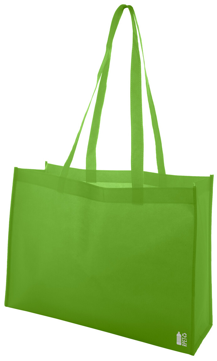 Nákupní taška z netkané textilie RPET s klínem a dlouhými uchy, 80 g/m2. S výrazným logem RPET.