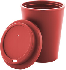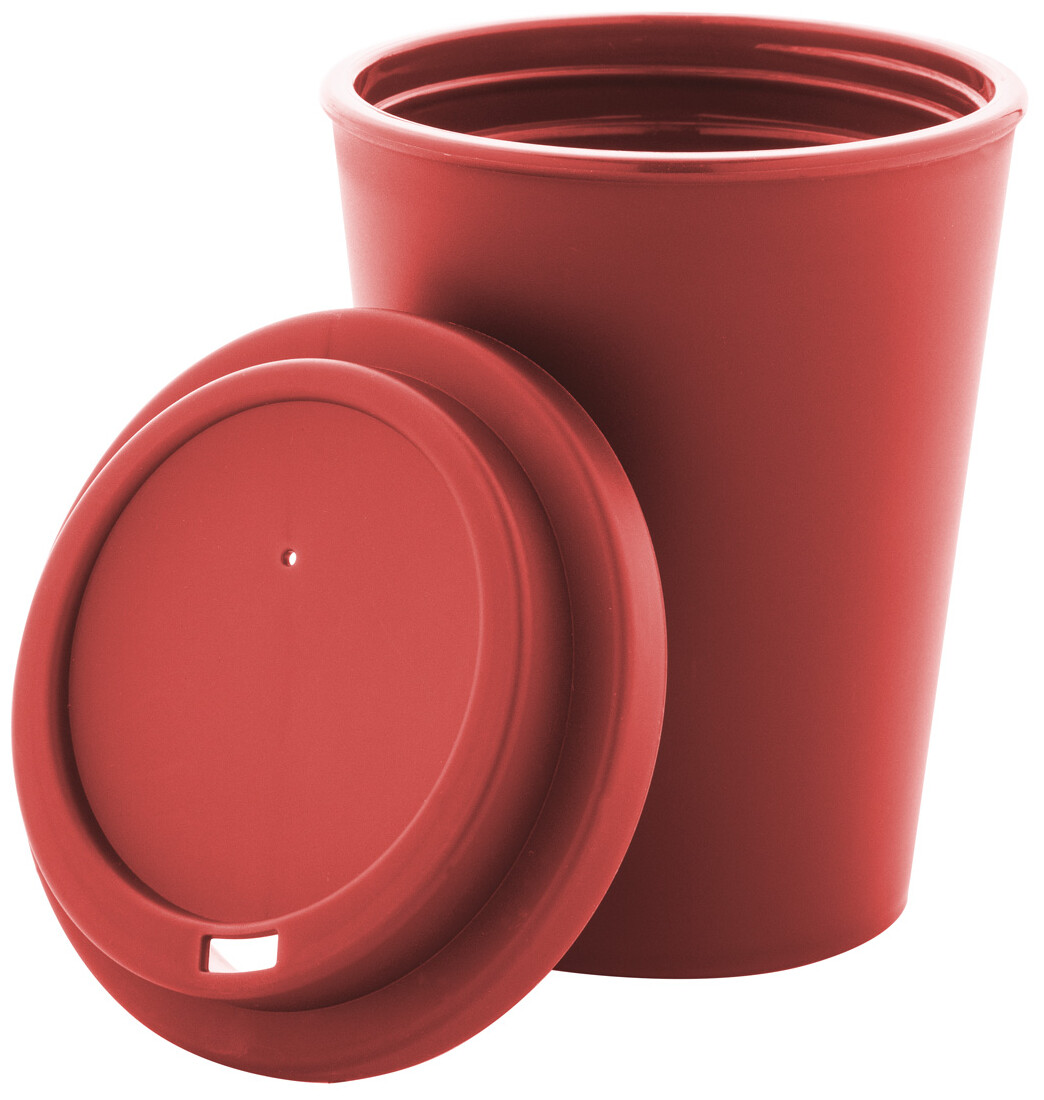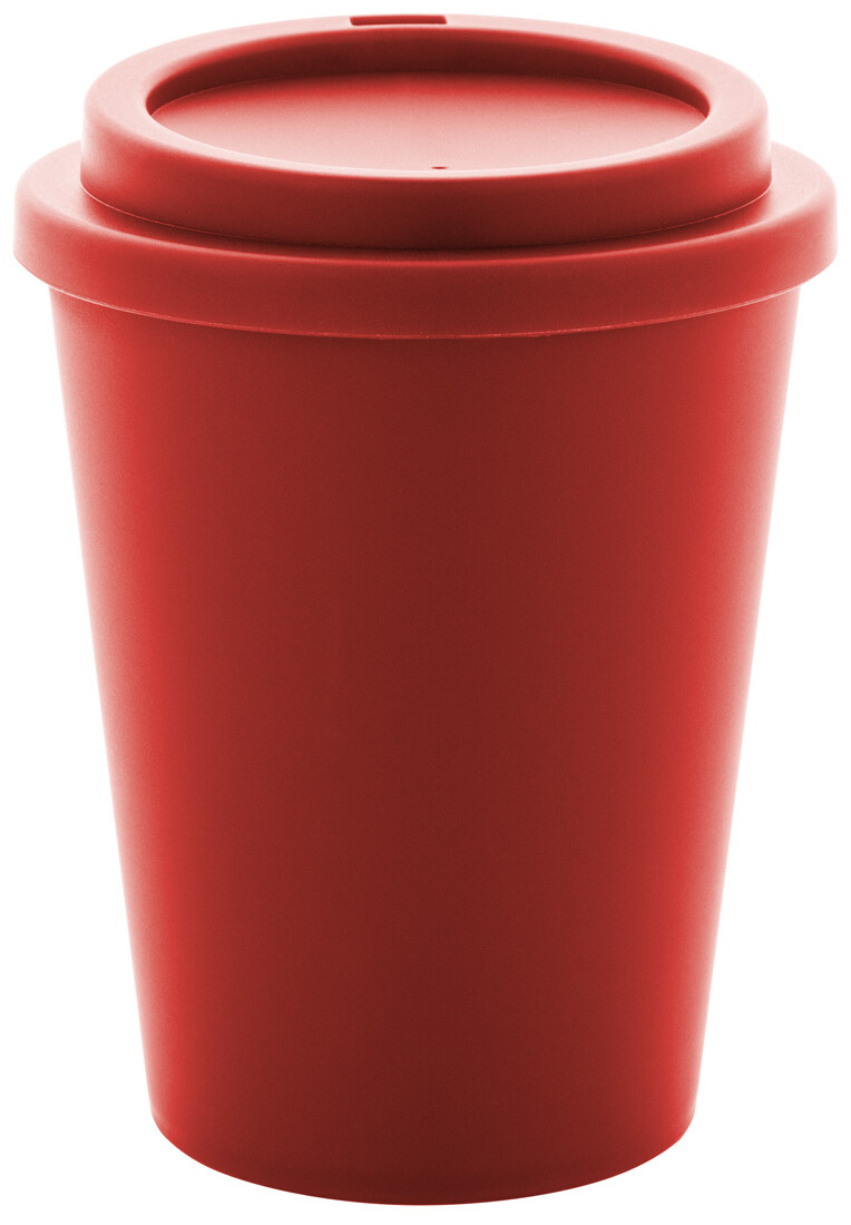 Dvoustěnný termo hrnek izolovaný PP plastem s víčkem na pití. 300 ml.